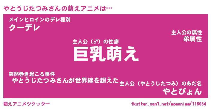 | 男性向けラノベタイトル風あだ名 | 『やとうじたつみの憂鬱』 |