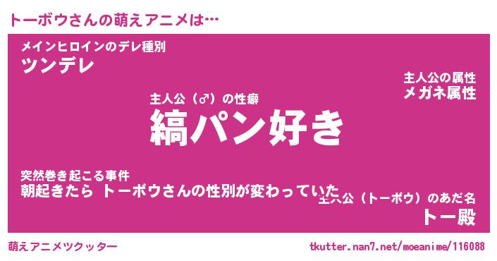 | ヘコむあだ名 | 『トーにー』『なまこ酢』『トーを』 |