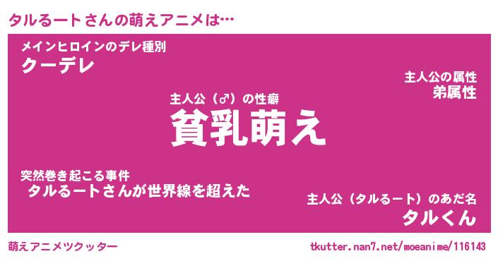 | 男性向けラノベタイトル風あだ名 | 『タルるートの憂鬱』 |