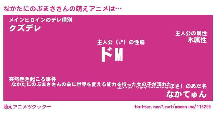 | 女子向けラノベタイトル風あだ名 | 『(仮)なかたにのぶまさのやんごとなき事情』 |