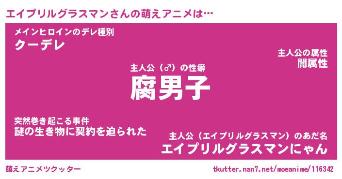 | ツイッター | エイプリルグラスマンさんのツイッターID『katatsumuri_idle』 |