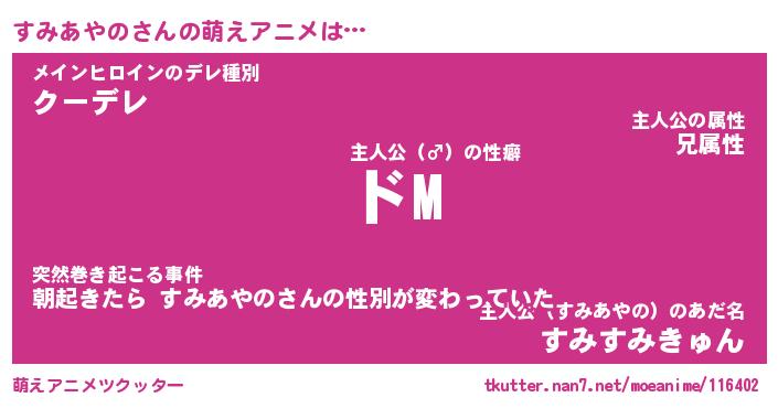 | 男性向けラノベタイトル風あだ名 | 『すみあやのの憂鬱』 |