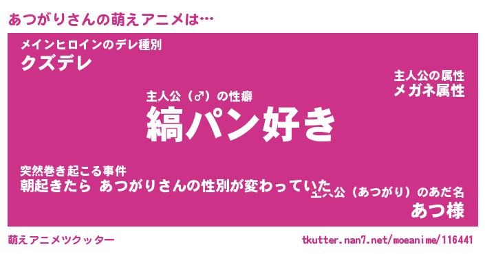 女子向けラノベタイトル風あだ名 | 『(仮)あつがりのやんごとなき事情』 |