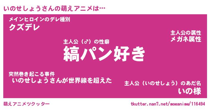 | 女子向けラノベタイトル風あだ名 | 『(仮)いのせしょうのやんごとなき事情』 |