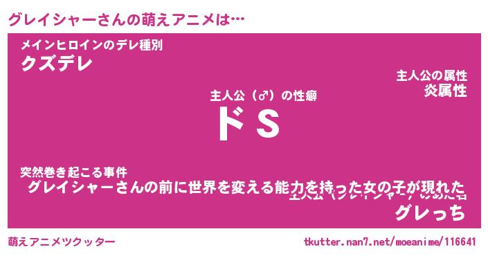 | 男性向けラノベタイトル風あだ名 | 『グレイシャーの憂鬱』 |