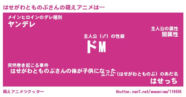 | 男性向けラノベタイトル風あだ名 | 『はせがわとものぶの憂鬱』 |