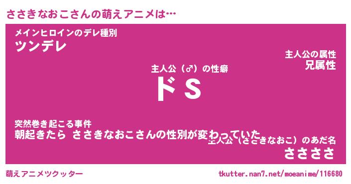 | 女子向けラノベタイトル風あだ名 | 『(仮)ささきなおこのやんごとなき事情』 |