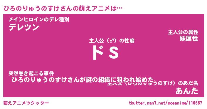 | 男性向けラノベタイトル風あだ名 | 『ひろのりゅうのすけの憂鬱』 |