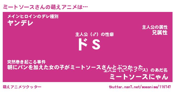 | 女子向けラノベタイトル風あだ名 | 『(仮)ミートソースのやんごとなき事情』 |