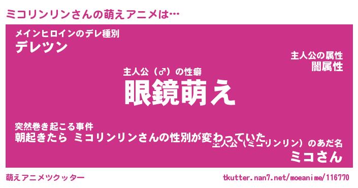 | 男性向けラノベタイトル風あだ名 | 『ミコリンリンの憂鬱』 |