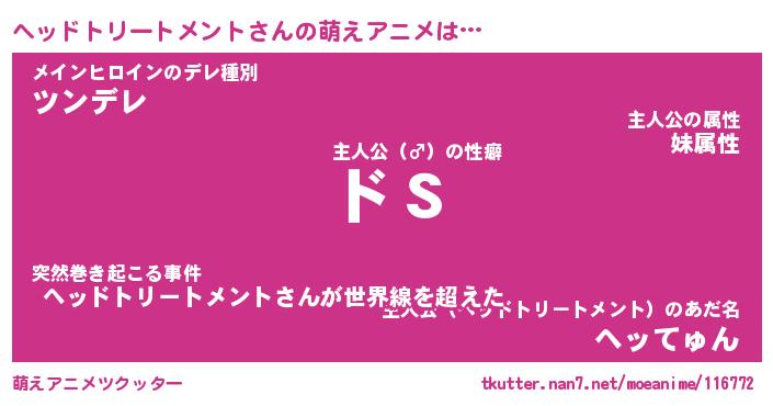 | 女子向けラノベタイトル風あだ名 | 『(仮)ヘッドトリートメントのやんごとなき事情』 |