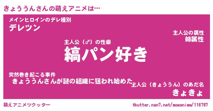 | 男性向けラノベタイトル風あだ名 | 『きょううんの憂鬱』 |
