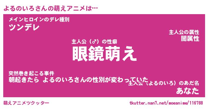 | ヒーロー風カッコイイあだ名 | 『スーパーヨルノイロ』『天弓騎士ヨル』 |