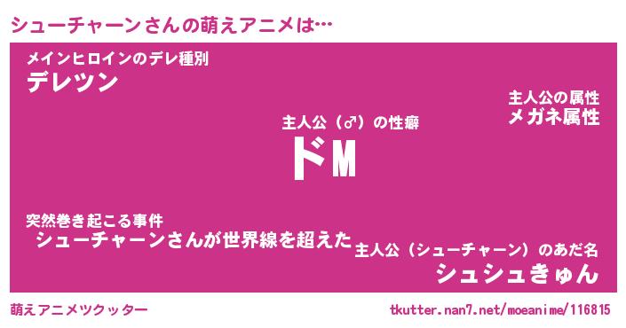 | 男性向けラノベタイトル風あだ名 | 『シューチャーンの憂鬱』 |