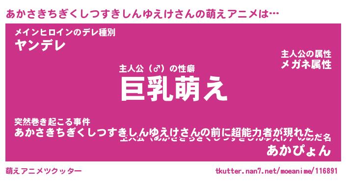 | 男性向けラノベタイトル風あだ名 | 『あかさきちぎくしつすきしんゆえけの憂鬱』 |