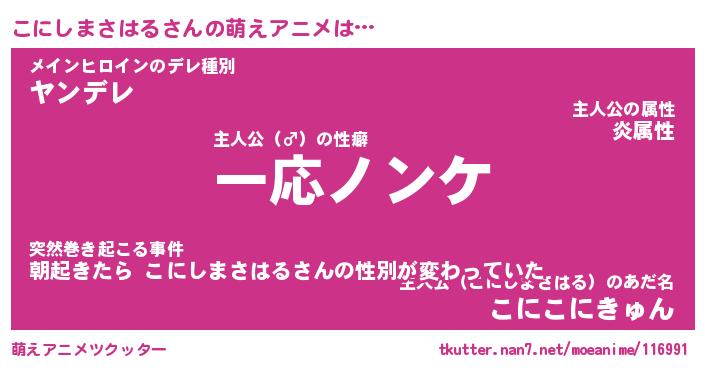 | 2回繰り返すあだ名 | 『こにこに』『ここにに』『ぬれぬれ』 |