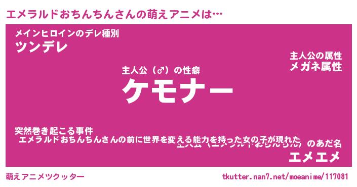 | 女子向けラノベタイトル風あだ名 | 『誰かこのエメラルドおちんちんを説明してください! ~契約から始まるウェディング~』 |