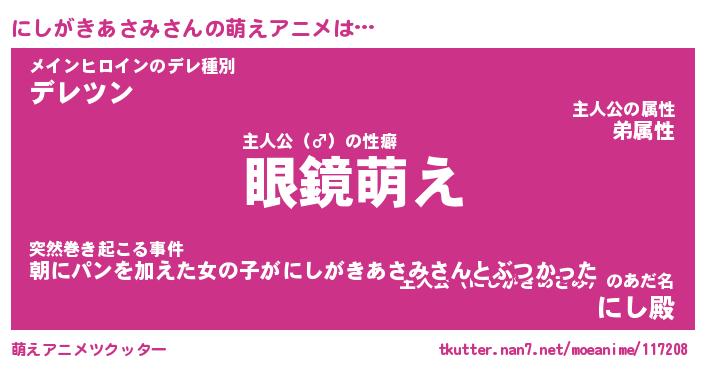 | ヘコむあだ名 | 『にしもー』『豆乳』『にしを』 |