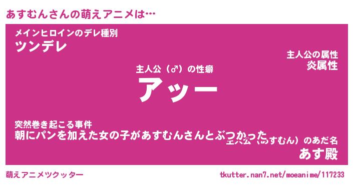 | 2回繰り返すあだ名 | 『あすあす』『ああすす』『ぬめぬめ』 |