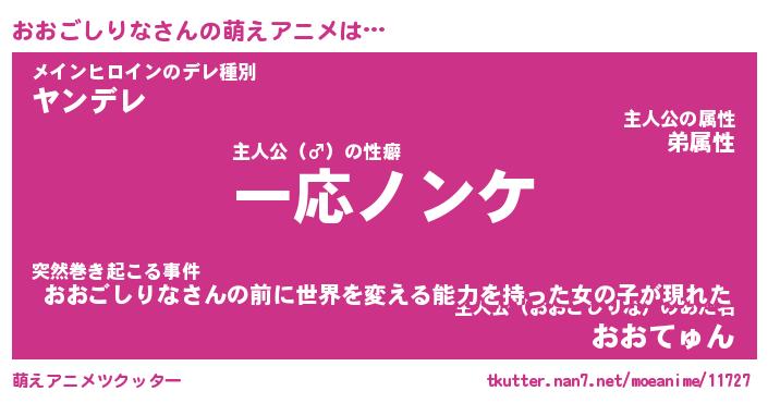 | 男性向けラノベタイトル風あだ名 | 『オオゴシリナアートオンライン』 |