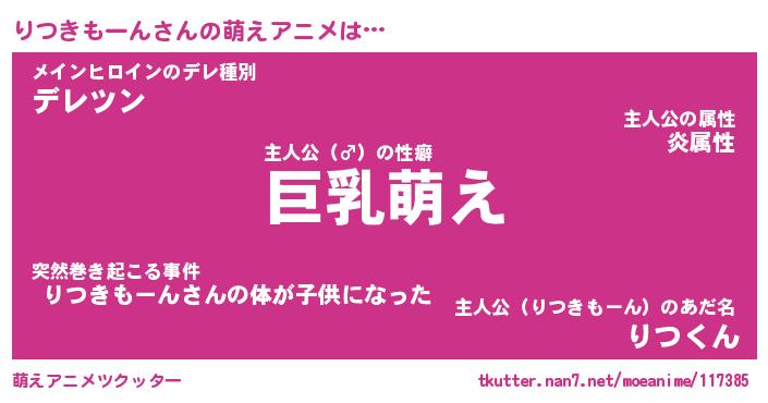 | 男性向けラノベタイトル風あだ名 | 『りつきもーんの憂鬱』 |