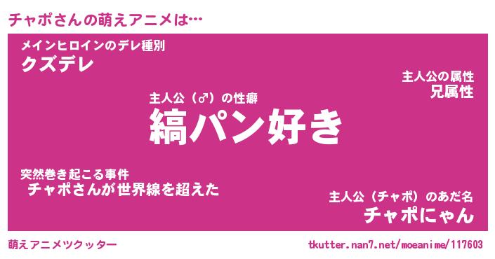 | 男性向けラノベタイトル風あだ名 | 『チャポの憂鬱』 |