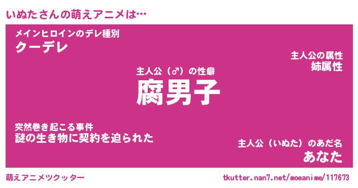 | ファンタジー風あだ名 | 『イヌフェル』『エターナルイヌター』 |