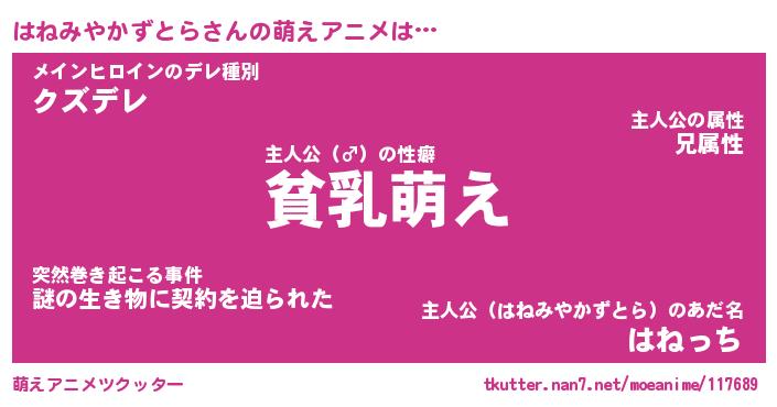 | 女子向けラノベタイトル風あだ名 | 『(仮)はねみやかずとらのやんごとなき事情』 |