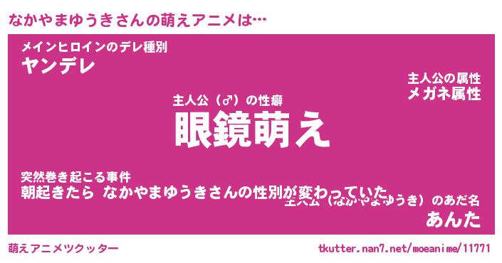 | 男性向けラノベタイトル風あだ名 | 『なかやまゆうきの憂鬱』 |