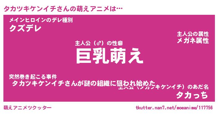 | 男性向けラノベタイトル風あだ名 | 『タカツキケンイチの憂鬱』 |