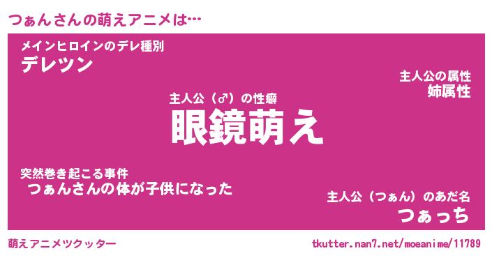 | 男性向けラノベタイトル風あだ名 | 『つぁんの憂鬱』 |