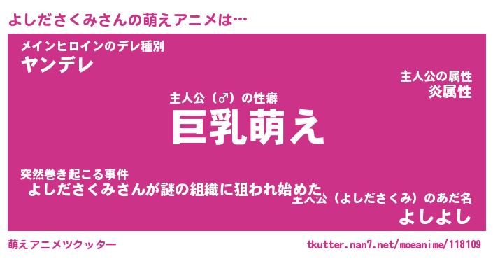 | ヒーロー風カッコイイあだ名 | 『スーパーヨシダサクミ』『魔戒騎士ヨシ』 |