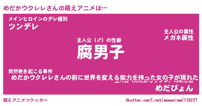 | 男性向けラノベタイトル風あだ名 | 『メダカウクレレアートオンライン』 |
