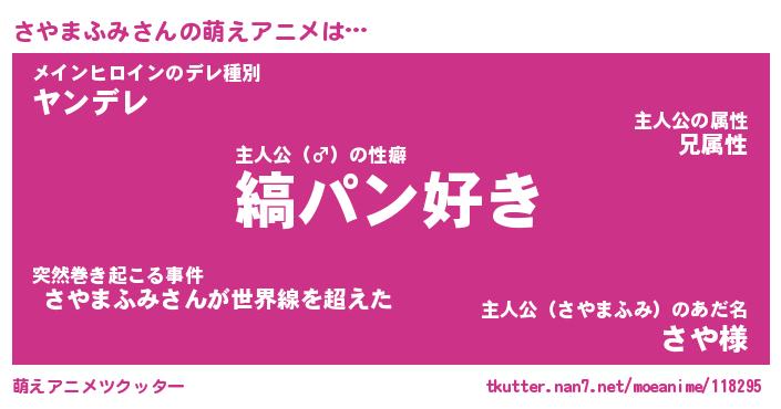 | ファンタジー風あだ名 | 『サヤフェル』『エターナルサヤマフミー』 |
