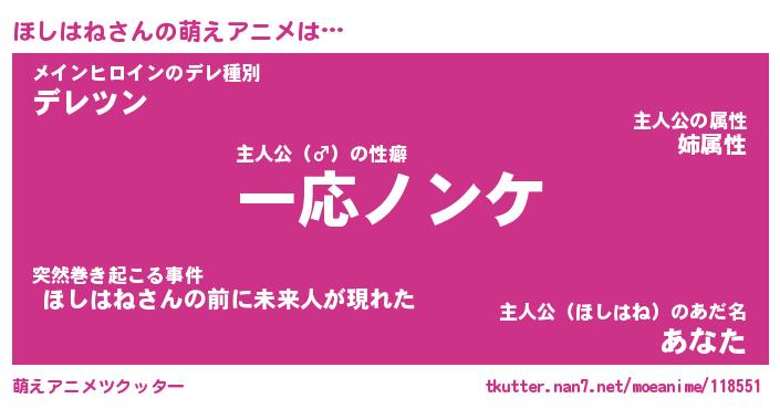 | 男性向けラノベタイトル風あだ名 | 『ホシハネアートオンライン』 |