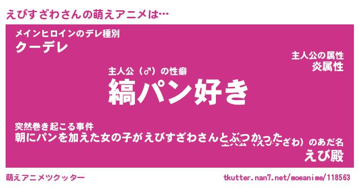 | 男性向けラノベタイトル風あだ名 | 『えびすざわの憂鬱』 |