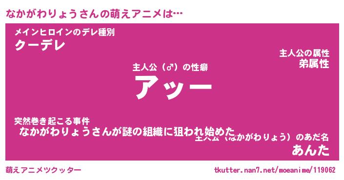 | 女子向けラノベタイトル風あだ名 | 『誰かこのなかがわりょうを説明してください! ~契約から始まるウェディング~』 |