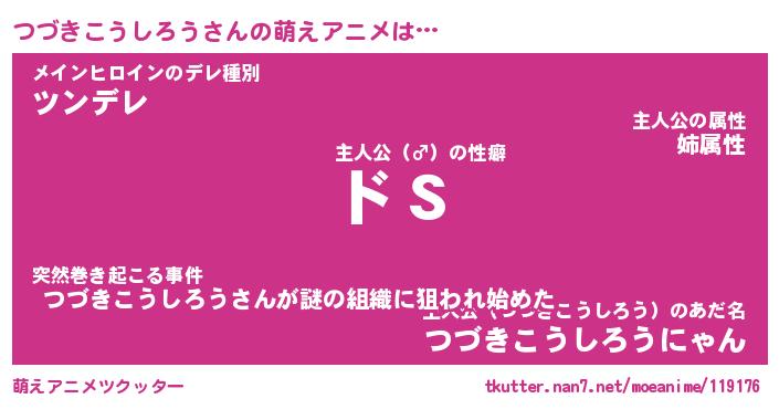 | 男性向けラノベタイトル風あだ名 | 『つづきこうしろうの憂鬱』 |
