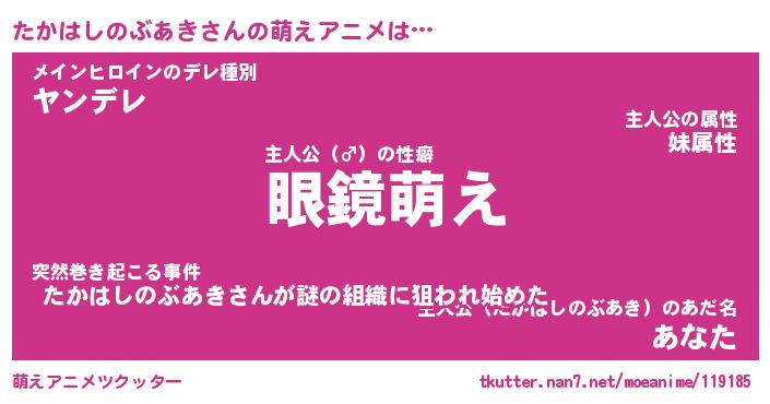 | 肩書あだ名 | 『たかはしのぶあき御曹司』 |