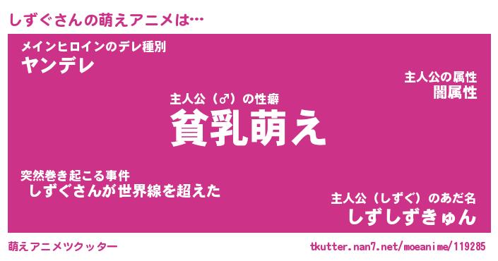 | 女子向けラノベタイトル風あだ名 | 『(仮)しずぐのやんごとなき事情』 |
