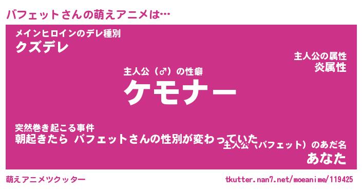 | 女子向けラノベタイトル風あだ名 | 『誰かこのバフェットを説明してください! ~契約から始まるウェディング~』 |