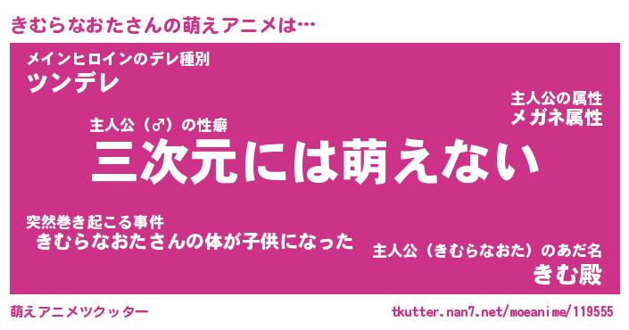 | 男性向けラノベタイトル風あだ名 | 『キムラナオタアートオンライン』 |