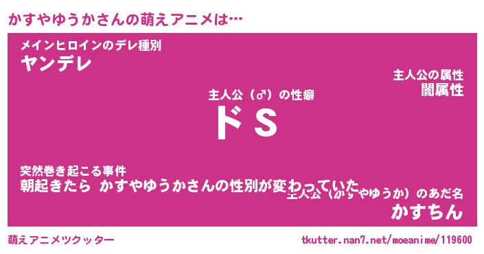 | 男性向けラノベタイトル風あだ名 | 『かすやゆうかの憂鬱』 |