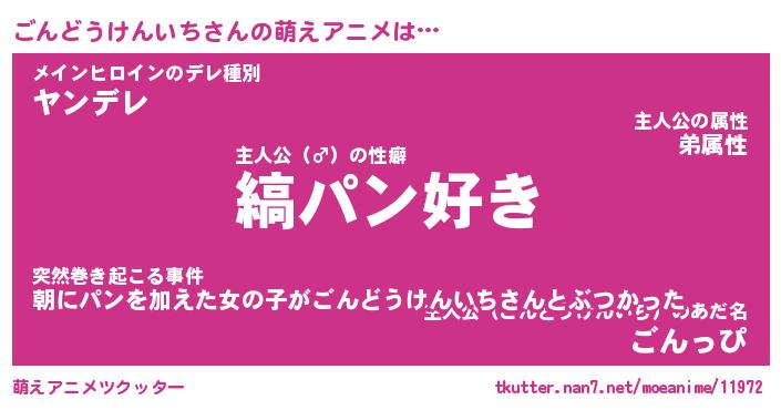 | 男性向けラノベタイトル風あだ名 | 『ごんどうけんいちの憂鬱』 |
