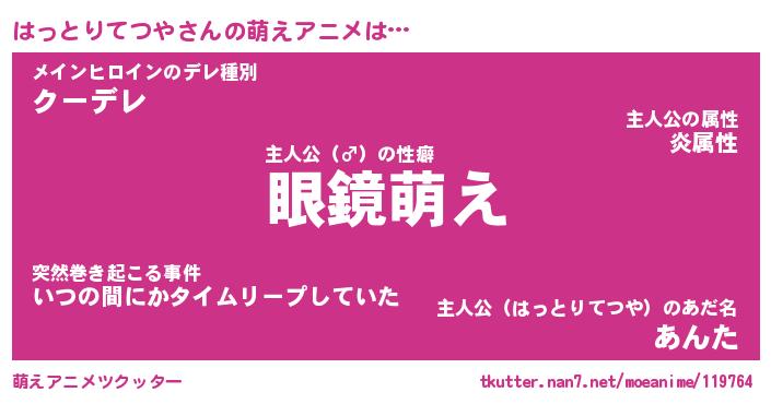 | 男性向けラノベタイトル風あだ名 | 『はっとりてつやの憂鬱』 |
