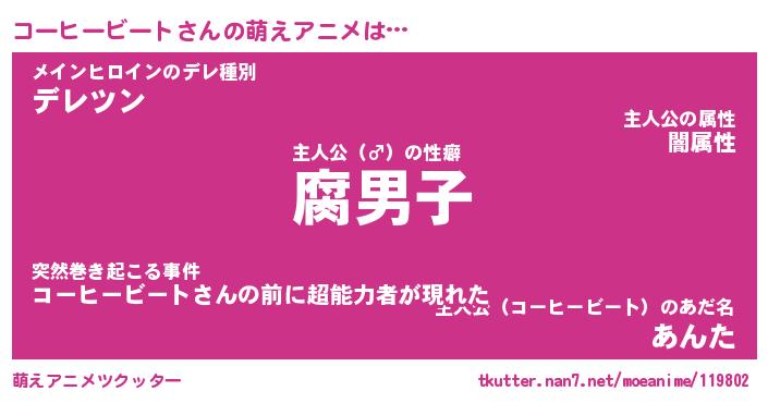 | 男性向けラノベタイトル風あだ名 | 『コーヒービートアートオンライン』 |