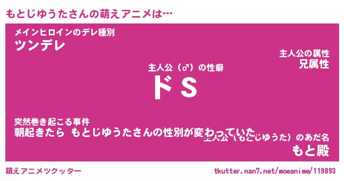 | 男性向けラノベタイトル風あだ名 | 『もとじゆうたの憂鬱』 |