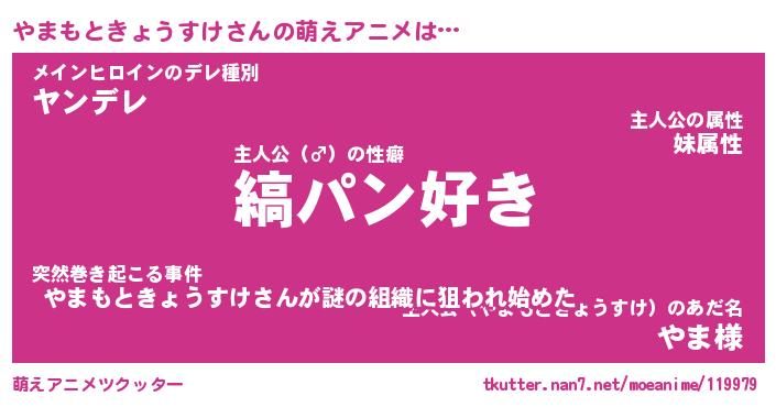 | 男性向けラノベタイトル風あだ名 | 『やまもときょうすけの憂鬱』 |