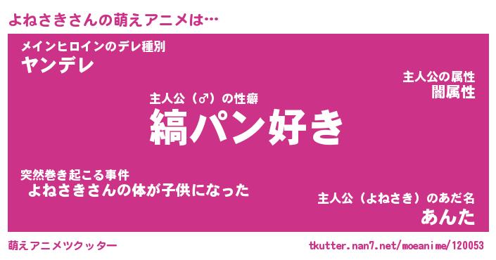 | 男性向けラノベタイトル風あだ名 | 『よねさきの憂鬱』 |