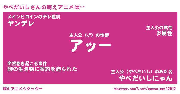 | 自動車の名前っぽいあだ名 | 『ヤベティマ』『ヤクア』『デミヤ』 |